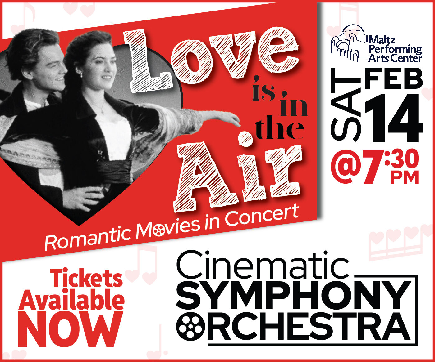 This Valentine’s Day, let your heart take flight as the Cinematic Symphony Orchestra presents LOVE IS IN THE AIR. With the breathtaking power of a full orchestra and choir, this dazzling concert brings to life some of the most romantic, magical, and unforgettable music ever written for film.